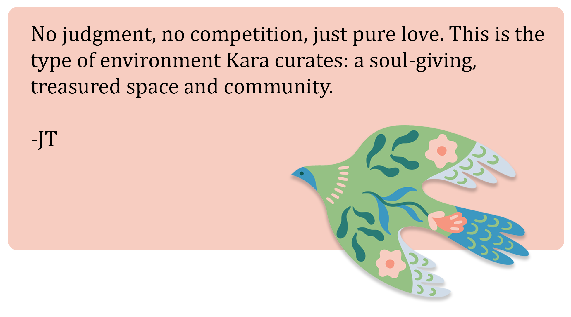 If you elect to add a private oracle card reading with me (Kara) or a 1:1 Breath Session with guest facilitator Davel Patel of AURABREATH at check-out, we will contact you individually to schedule those for Friday afternoon. More details below.